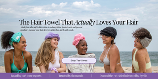 It’s time to ditch the bath towels and makeshift t-shirt head-wraps, and switch to our perfect protective hair towel hybrid, the Tee-Owel.